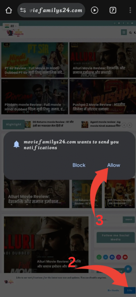 2. ✅ नीचे Allow और Like Option दिखेगा क्लिक करो ।