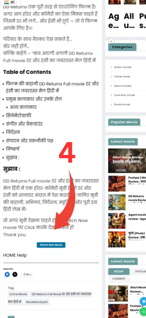 - ⬇️ नीचे स्क्रॉल करते हुए Watch Now Movie बटन तक पहुँचिए